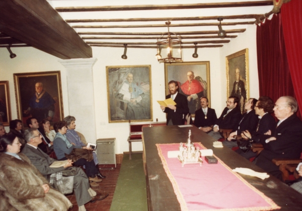 Leyendo el discurso de entrada en la Academia de Bellas Artes de Valladolid.