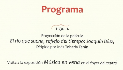 Además de la proyección del documental sobre la vida artística de Joaquín Díaz, se procedió a la inauguración en la antesala del Teatro Zorrilla de la exposición denominada ‘Música en vena’, de la que es comisario Antonio Piedra, director de la Fundación Jorge Guillén, donde en paneles con texto y fotografías se recopila una dilatada labor en favor de la cultura popular.