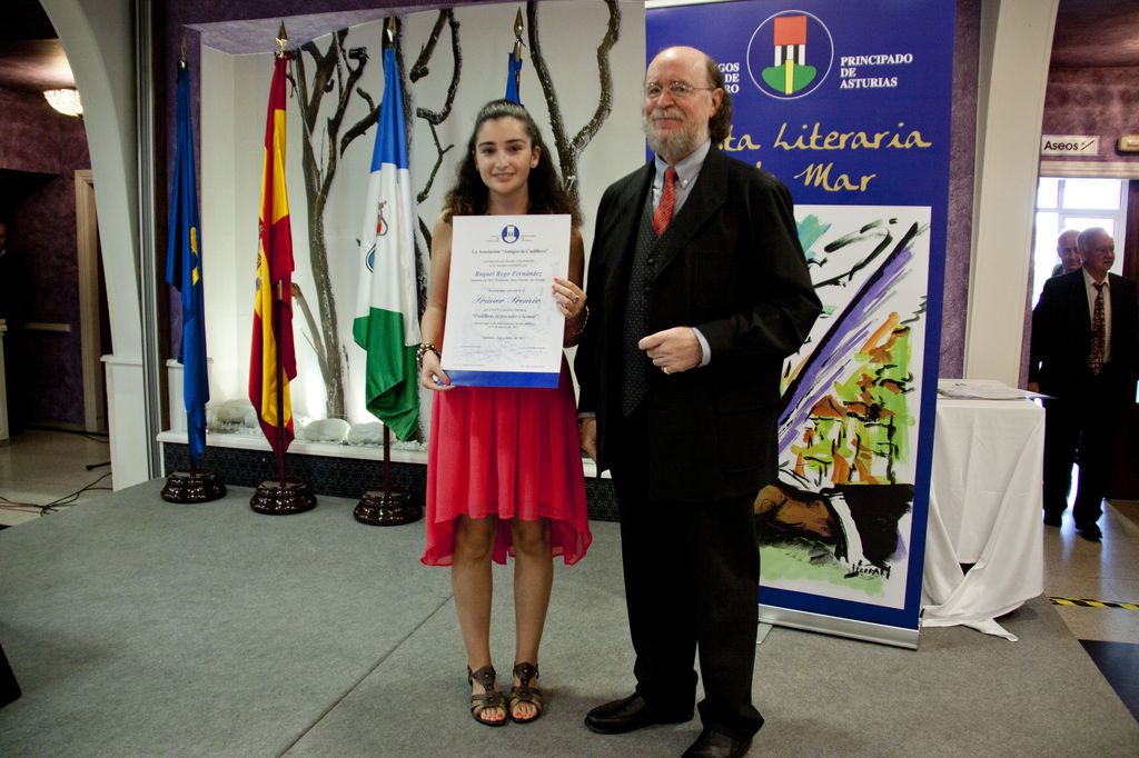 Podemos ver en esta última foto a Joaquín Díaz posando junto a la ganadora del trigésimo cuarto concurso literario de ámbito regional “Cudillero, el pescador y la mar”, que anualmente convoca la Asociación “Amigos de Cudillero», quien recibió su correspondiente premio durante el evento.