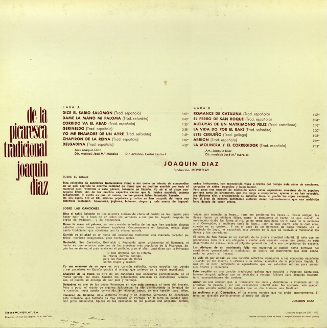 Son catorce los temas incluidos en este trabajo de Joaquín Díaz publicado por Movieplay en 1970 y producido por Carlos Guitart. Grabado en los estudios Celada, contó con la participación de Jean François Beaudet como técnico de sonido y José María Morales como director musical.