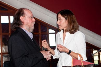 La ponencia de Marta Martínez Arnáiz llevó por título: «El paisaje vitivinícola como patrimonio cultural de la UNESCO”. En la foto conversando con Joaquín Díaz.