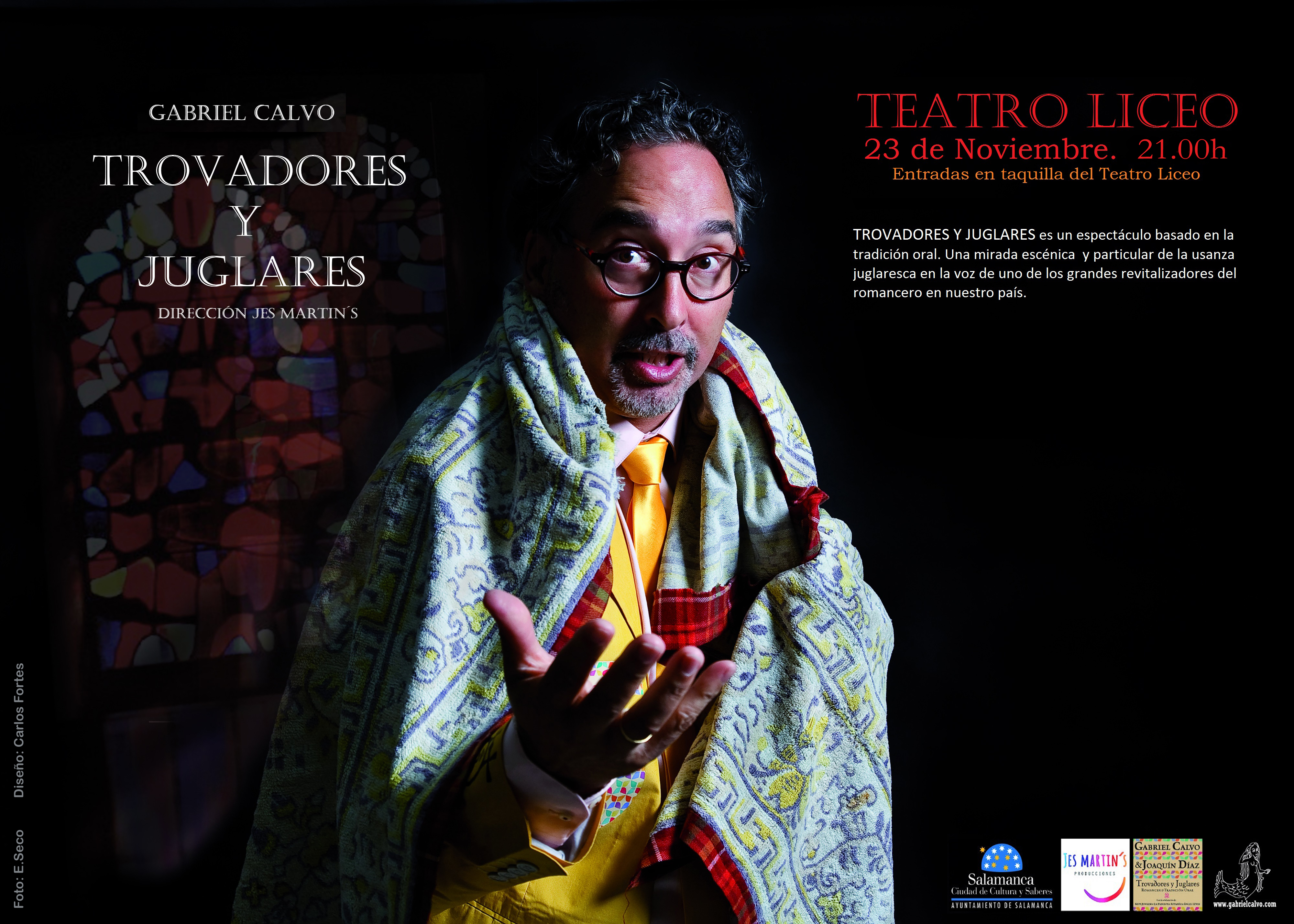 El espectáculo con texto del propio Gabriel será estrenado en el teatro Liceo de Salamanca el día 23 de noviembre (pincha aquí para acceder al sistema de venta de entradas). Ha sido dirigido y diseñado escénicamente por el actor y cómico Jes Martín´s. “La función” como la define el propio autor, se vertebra en cinco actos y en cada uno se cuentan y se canta un romance determinado. El protagonista es un viejo Juglar que renace para dar a conocer sus vivencias.
