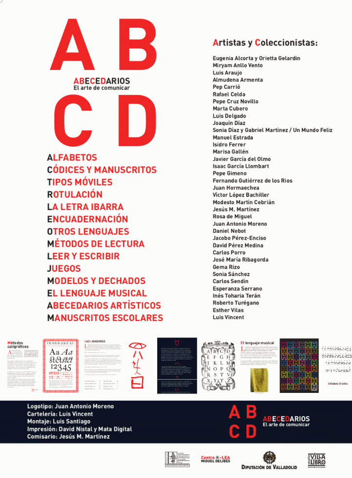 El pasado 17 de septiembre de 2018 se inauguró en el Centro e-LEA Miguel Delibes de Urueña (Valladolid) la exposición permanente «Abecedarios: El arte de comunicar«, comisariada por Jesús María Martínez y en cuya organización ha participado la Fundación Joaquín Díaz.