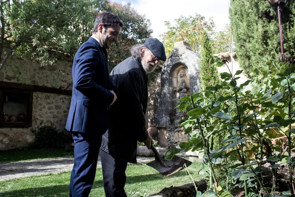 La mencionada fundación, cuya sede se sitúa en la localidad vallisoletana de La Mudarra, inauguró el “Huerto de los Cipreses” de su jardín en La Casa Grande plantando el árbol que enraíza a Joaquín Díaz para siempre con esta institución cultural. Podemos ver una fotografía del momento sobre estas líneas (Fotografías: Pez Volador).