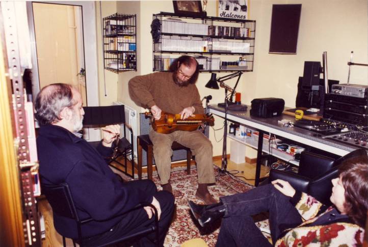 Joaquín Díaz compuso la melodía del «Romance de la zanfona«, que así lo hemos titulado pues no llegó a tener nombre definitivo, utilizando Luis Anselmo en su grabación el siguiente equipamiento: Micrófono AKG D 707 C, micrófono SHURE SM 58, mesa de mezclas ECLER Mac 8.2, procesador de efectos KORG SDD 1000 y magnetófono de carrete abierto Philips N 4522 de dos pistas. Como podemos ver en la fotografía situada bajo estas líneas, Elena Casuso y el inolvidable Luis de la Fuente acompañaron a Joaquín durante la sesión de trabajo.