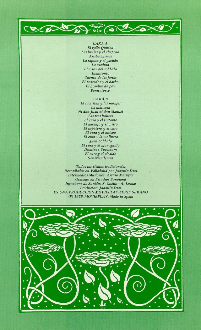 Son veinticinco los temas incluidos en este trabajo de Joaquín Díaz editado por Movieplay (Serie Serano) en 1979, producido por el propio Joaquín y grabado en los estudios Sonoland (Madrid). Contó con la participación de Santiago Coello y Antonio Lomas como ingenieros de sonido, así como de Arturo Marugán como responsable de los cortes musicales que separan las pistas.
