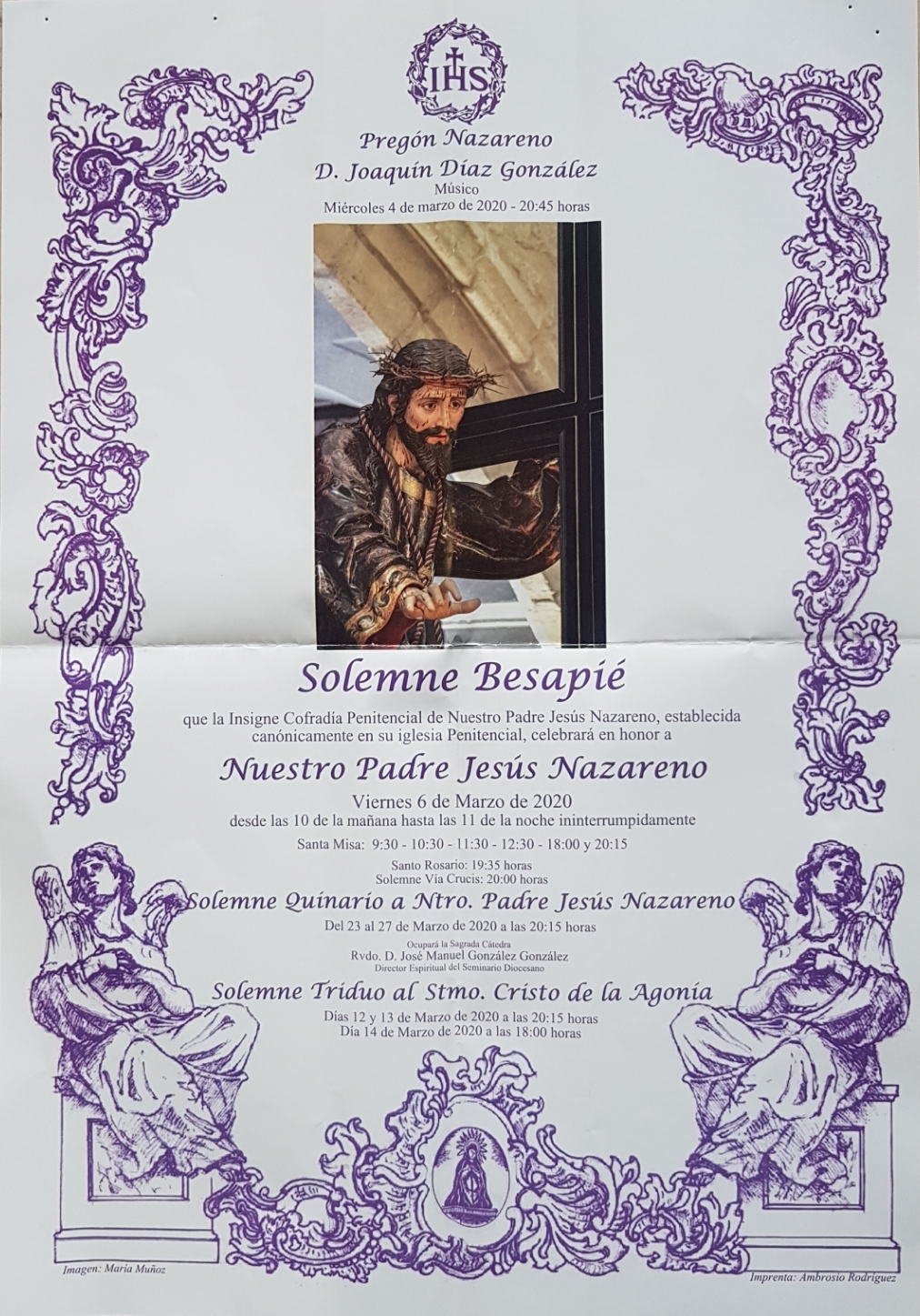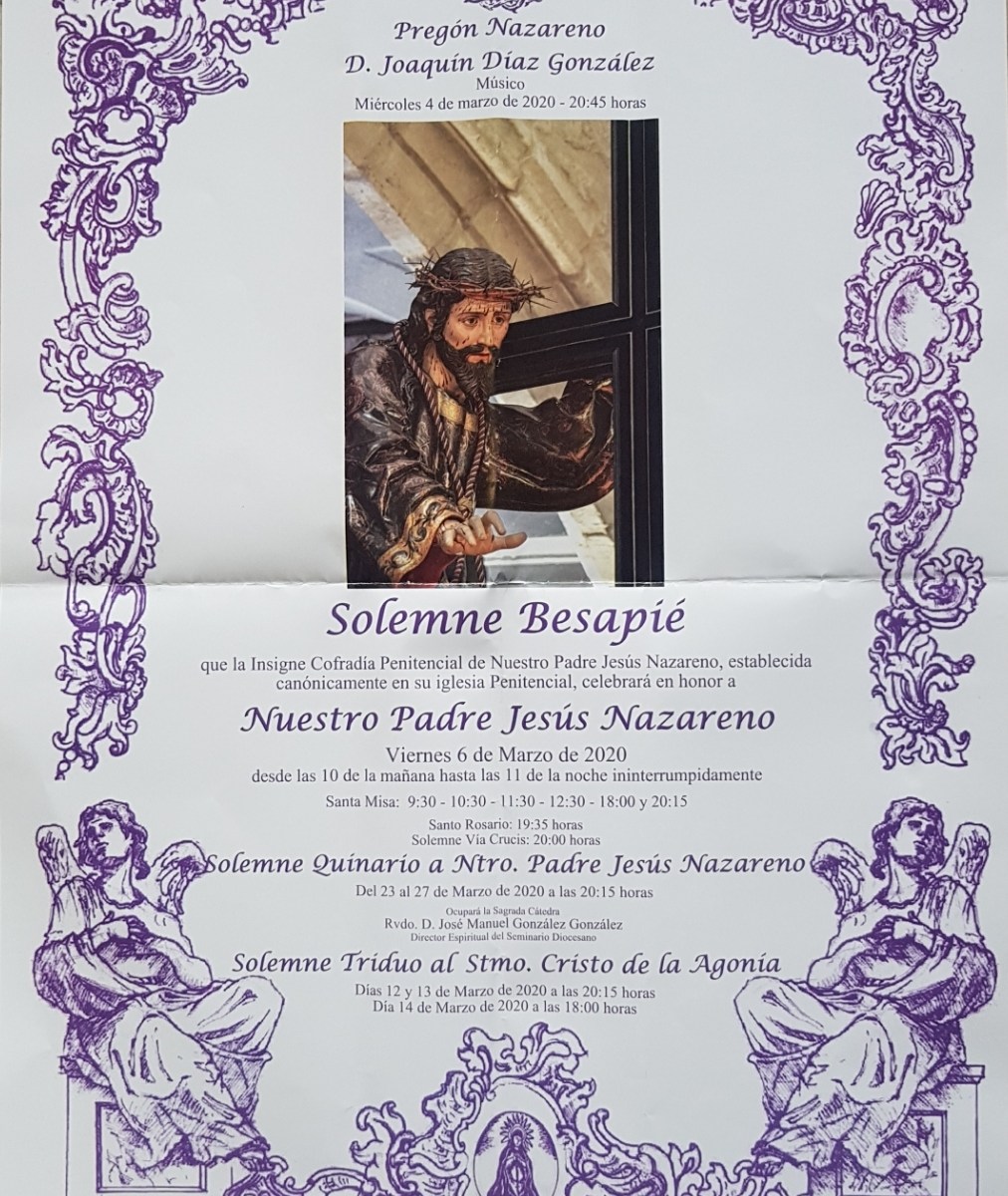 Alteramos ligeramente la «programación» de contenidos del blog, retrasando al próximo miércoles nuestro habitual vídeo del mes, para llegar a tiempo de informar sobre el pregón nazareno a cargo de Joaquín Díaz que tendrá lugar esta tarde (20:45 horas) en la Iglesia Penitencial de la Cofradía de Nuestro Padre Jesús Nazareno de Valladolid (calle de Jesús, junto a la Plaza Mayor). Más información pinchando aquí.