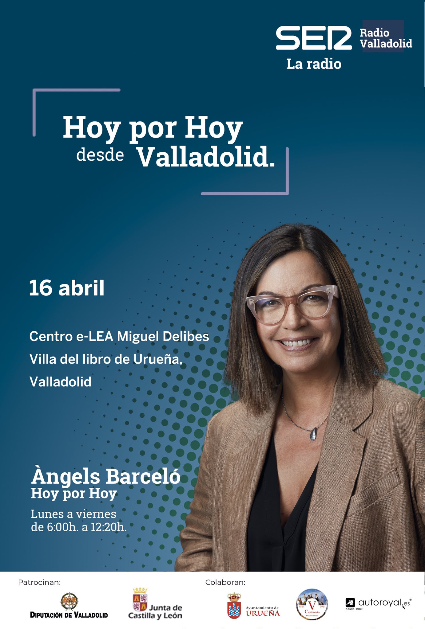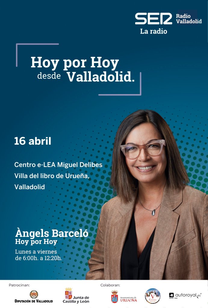 Hoy por hoy, el exitoso programa de la Cadena SER presentado por Angels Barceló, se emitió el pasado viernes 16 de abril desde la localidad vallisoletana de Urueña. El Centro e-LEA Miguel Delibes fue el lugar escogido para instalar el improvisado estudio, como podemos ver en la fotografía situada bajo estas líneas, aunque durante las más de cuatro horas de emisión en directo se realizaron conexiones con otros puntos de interés de la Villa del Libro.