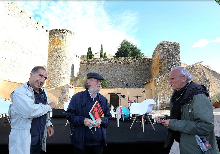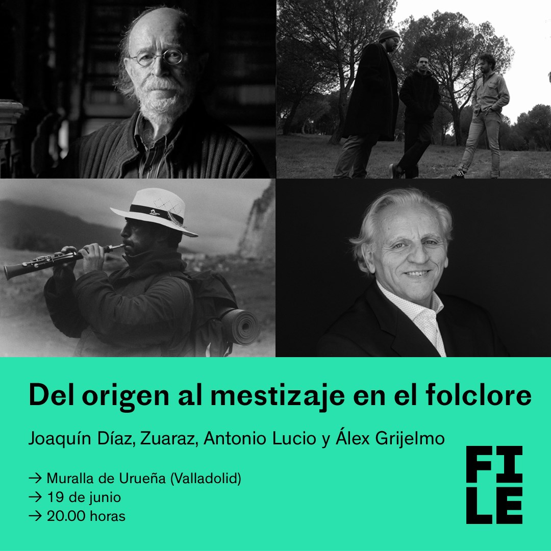 En el contexto de la programación del Festival internacional de literatura en español de Castilla y León (FILE 2021) el pasado sábado 19 de junio de 2021 tuvo lugar junto a las murallas de la localidad de Urueña (Valladolid) un interesante encuentro, bautizado como «Del origen al mestizaje en el folclore«, entre Joaquín Díaz, Álex Grijelmo, periodista y fundador del grupo Orégano, y Antonio Lucio, Tonet, abogado y músico. Reproducimos a continuación un breve extracto de la información publicada al respecto en «Diario de Burgos«, siendo posible acceder al contenido completo pinchando aquí.