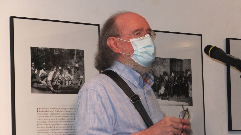 «Esta exposición comenzó a fraguarse mientras Publio López Mondéjar, el gran especialista de la fotografía en España, preparaba una singular muestra titulada «El rostro de las letras» en 2014, colección de antiguas instantáneas que recorrió numerosas capitales del país y dio como resultado un espléndido catálogo. Tras largas y juiciosas conversaciones, la idea quedó clara: había que rescatar y dar un sentido a las numerosísimas fotografías que habían ido captando durante más de un siglo los rostros y actitudes de músicos, grupos y orquestas españolas. El título, «La música callada», revelaba claramente una realidad -faltaban los sonidos- pero nos permitía descubrir lenguajes corporales y gestuales de extraordinario valor a la par que aportaba datos interesantes para la historia de los instrumentos musicales y sus intérpretes en España. Cuando todo estaba preparado para la magna exposición con más de 300 fotografías reunidas y 50 instrumentos seleccionados, llegó el desastre pandémico…