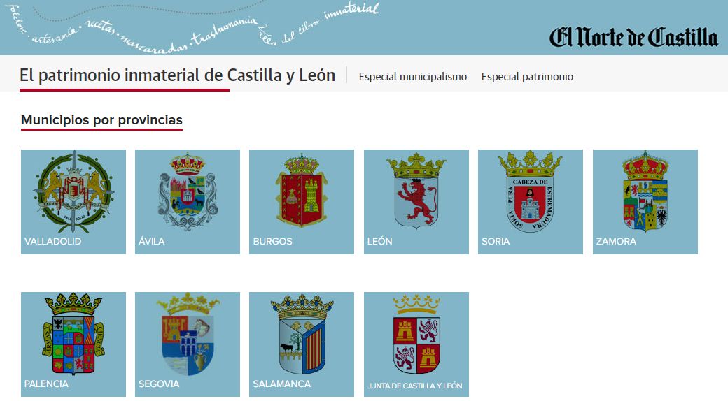 El Norte de Castilla ha volcado gran parte de los contenidos de ‘Municipalismo. El patrimonio inmaterial de Castilla y León‘ en una web, organizada en dos apartados. En el primero es posible consultar toda la información relativa a 324 municipios y siete diputaciones, distribuidos por provincias. En el segundo están disponibles los artículos de especialistas como nuestro protagonista Joaquín Díaz, o Jesús Pastor, investigador de las tradiciones de Tierra de Campos. También de autoridades como Alfonso Fernández Mañueco, presidente de la Junta de Castilla y León; Luis Fuentes, presidente de las Cortes, o Javier Ortega, consejero de Cultura y Turismo, así como de escritores como Ramón García Domínguez o historiadores como Enrique Berzal, además de otros expertos y columnistas de prestigio de esta tierra, entre otras colaboraciones. Puedes acceder a ella pinchando en el pie de página de la imagen situada bajo estas líneas.