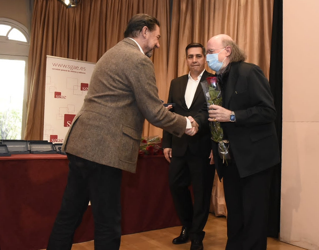 Un total de 23 socios recibieron el pasado 3 de noviembre la simbólica llave de manos del presidente de la SGAE, Antonio Onetti. Así, en la Sala Manuel de Falla del Palacio de Longoria (Madrid) se dieron cita, en representación del colegio de Pequeño Derecho, nuestro protagonista Joaquín Díaz, el Premio Nacional de Música y Premio Iberoamericano Tomás Luis de Victoria Tomás Marco, el autor de la letra de ‘Mamy blue’, el músico Phil Trim, el autor de las letras de las canciones de las series infantiles ‘Mazinger Z’, ‘Tarzán’, ‘Vickie el vikingo’, ‘Pippi Calzaslargas’ y ‘La abeja Maya’, Alfredo Garrido o el compositor y cantautor granadino Miguel Ríos.