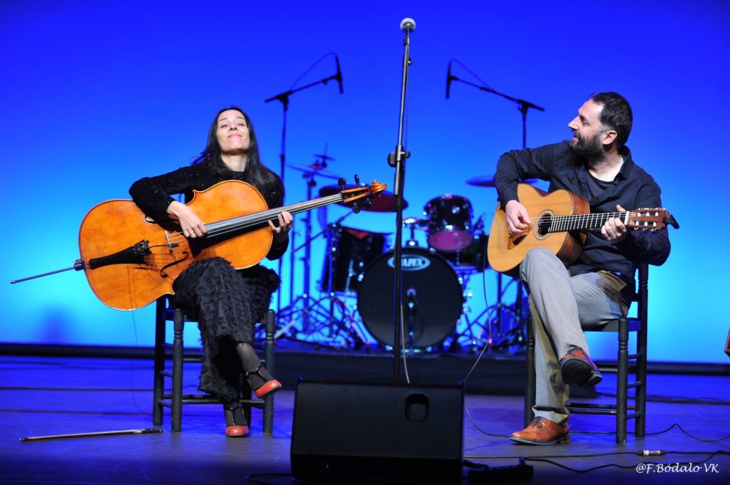 Primera actuación de la noche y no pudo haber mejor arranque: Brillante intervención de Zaruk, tierra sonora soñada por la violonchelista española Iris Azquinezer y el guitarrista alemán Rainer Seiferth.