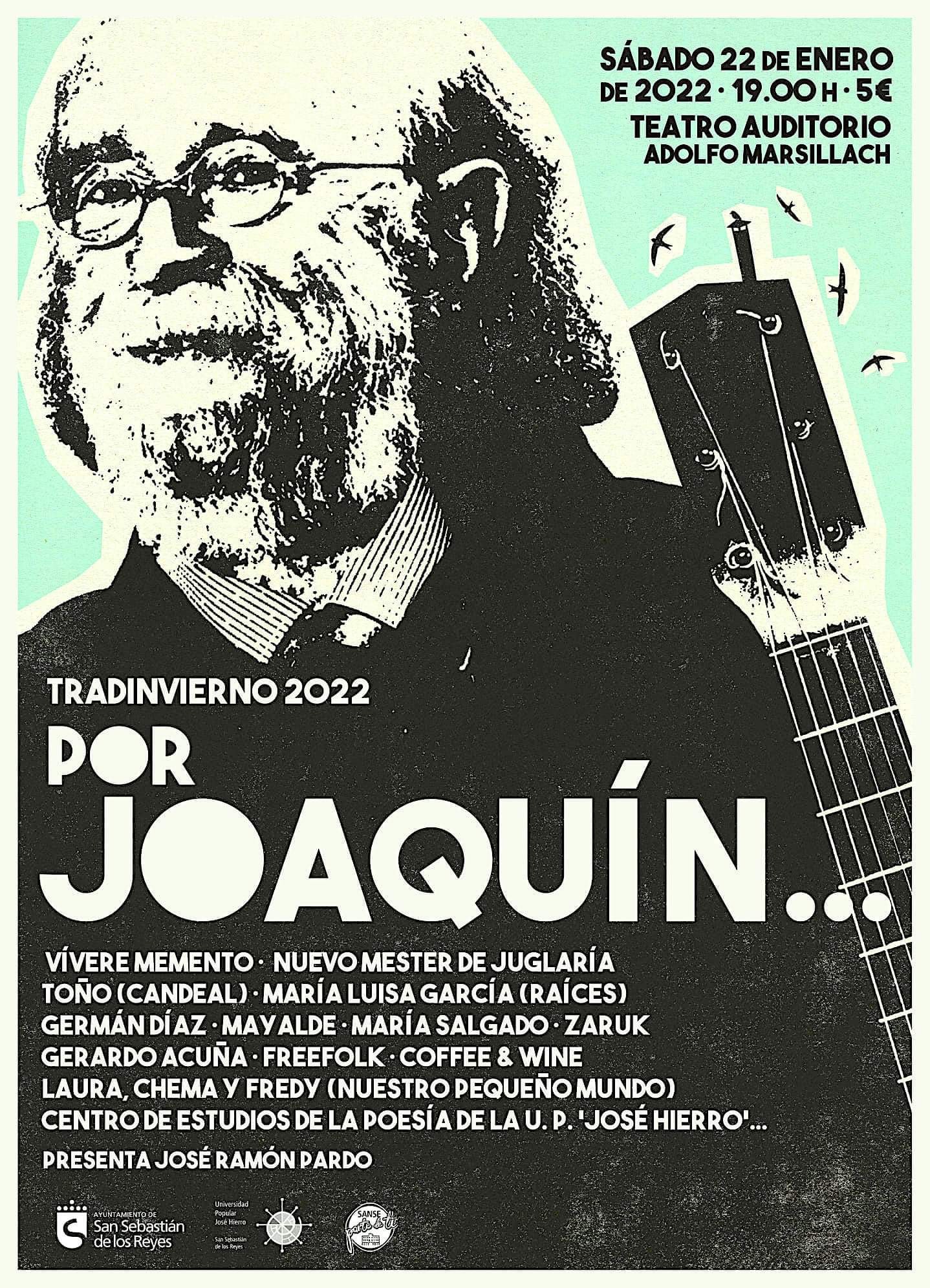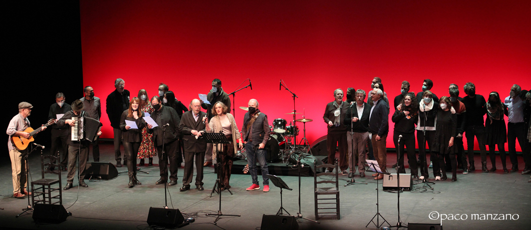 El homenaje llega a su fin. Han transcurrido casi tres horas y desearíamos disfrutar de otras tres. Todos los artistas suben al escenario y, junto con Joaquín, interpretan de forma conjunta «A los árboles altos».