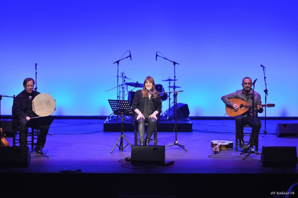 María Salgado, quien actuó acompañada de Cuco Pérez y Gaspar Payá, durante la interpretación de la sobrecogedora «Adio querido».
