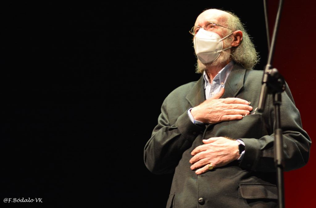 Toño Ortega, la «mitad de Candeal«, emocionó al público, primero recordando a su pareja artística, Félix Pérez, fallecido hace apenas un año y medio y, a continuación, con la interpretación de «La molinera y el Corregidor», acompañado de Luis Delgado, y «La palomita», junto a Cuco Pérez y de nuevo Luis Delgado.