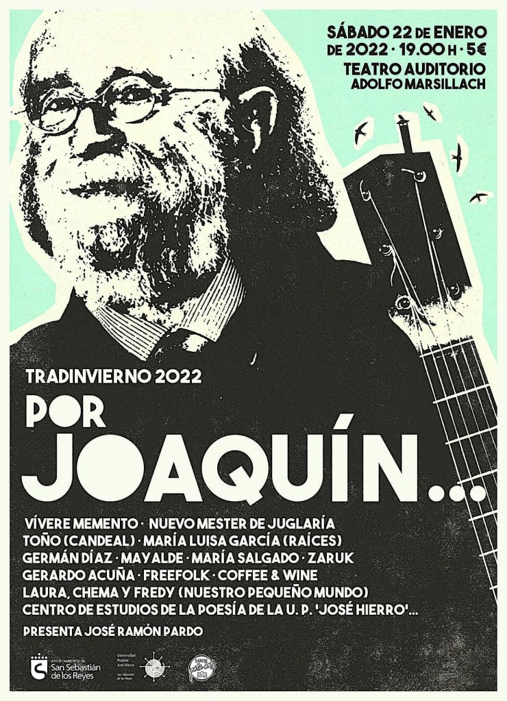 El Museo Etnográfico «El Caserón» (San Sebastián de los Reyes) rindió homenaje el pasado sábado, 22 de enero de 2022, a Joaquín Díaz. Dicho museo abrió sus puertas en agosto de 2005 y contiene amplios fondos de material etnográfico, recopilados desde la creación en 1982 del Centro de Estudios Tradicionales de la Universidad Popular «José Hierro». Queremos agradecer a Pablo García-Rayo, director de «El Caserón» y organizador del evento, por su extraordinaria labor en ambos aspectos.