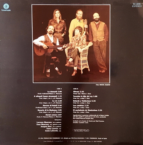 La carpeta interior del disco contiene, además de las letras de todos los temas, un breve texto de Ignazio Macchiarella, doctor en Musicología por la Universidad de Trento. Transcribimos ahora una parte, en relación a la participación de los hermanos Mancuso: