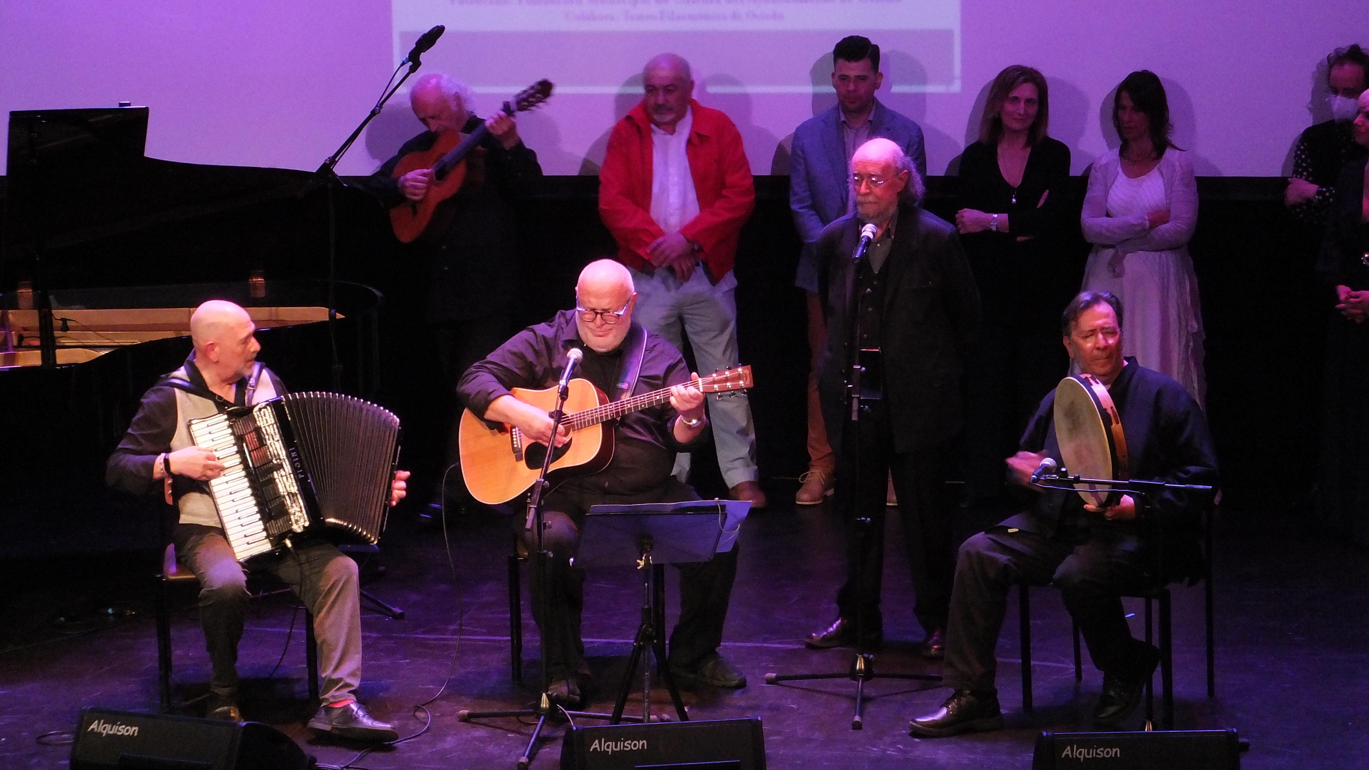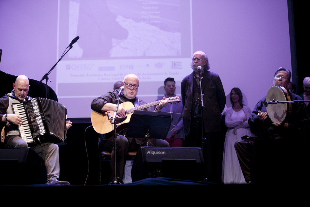 Decenas de músicos y cantantes se reunieron en el teatro Filarmónica de Oviedo para rendir un gran homenaje al artista venerado por su labor callada y persistente. Rotundas afirmaciones, como la de Víctor Manuel, cuando dijo “no os hacéis idea de lo importante que ha sido Joaquín Díaz en la música española y de lo que será para las próximas generaciones”. Tanto músicos del folk asturiano como de otras latitudes aunaron sus voces y sonidos para devolver (agradecidos) al maestro, su tributo a una obra impagable de rescate, recuperación y recreación de las músicas populares.