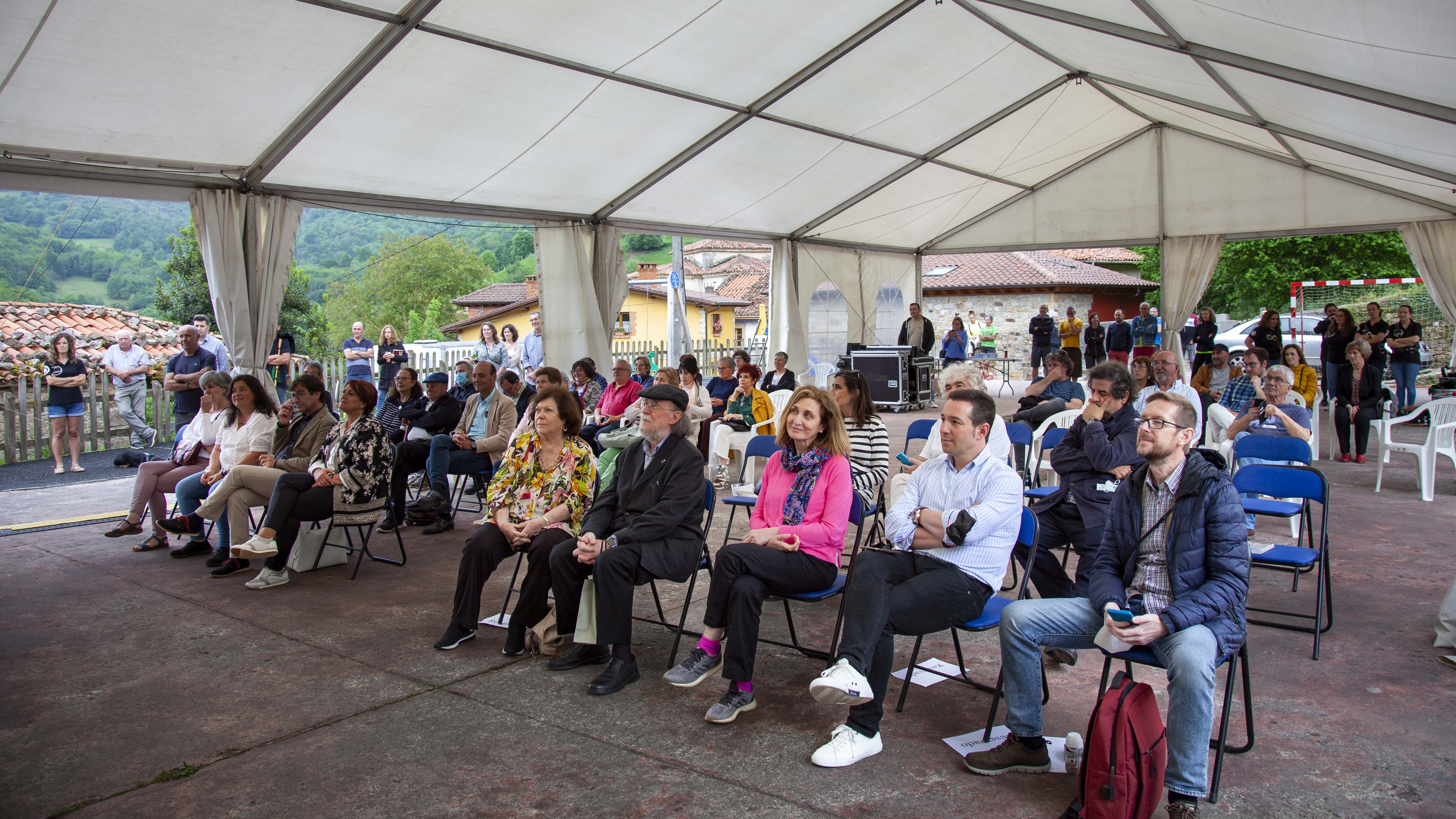 Más tarde, la comitiva se acercó hasta una carpa preparada en la plaza para que todos los asistentes pudieran ser testigos del momento en que Joaquín recibió las credenciales de su nombramiento como hijo adoptivo de Inguanzo, colocándosele la insignia del concejo en la solapa.