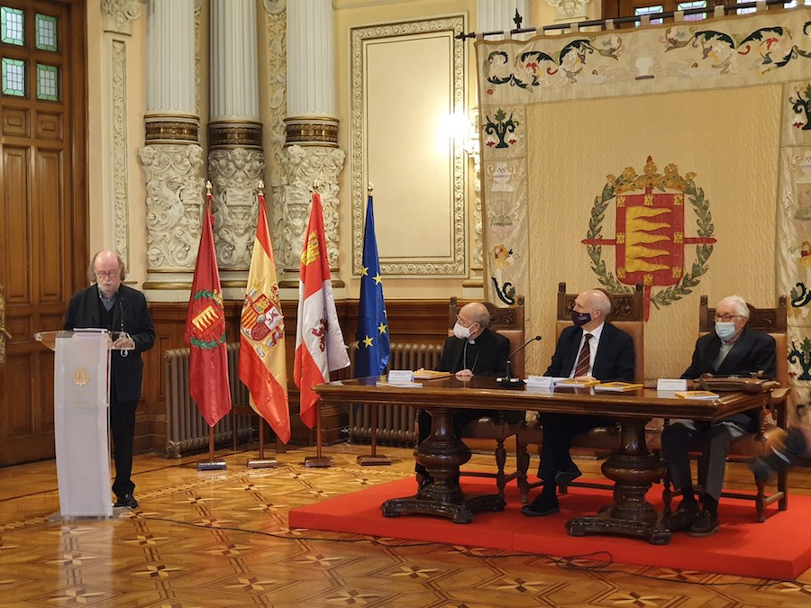 Agrupamos en esta publicación tres recientes presentaciones de libros en las que Joaquín Díaz ha colaborado, comenzando por la que tuvo lugar el 22 de marzo en el Ayuntamiento de Valladolid, y a la que pertenece la fotografía situada sobre estas líneas. Se trata de «El Catecismo de Valladolid de 1332«, obra de Luis Resines editada por el Servicio de Publicaciones de dicho Ayuntamiento. También asistieron al acto el cardenal-arzobispo de Valladolid don Ricardo Blázquez y el Concejal de Salud pública y seguridad ciudadana Alberto Palomino.