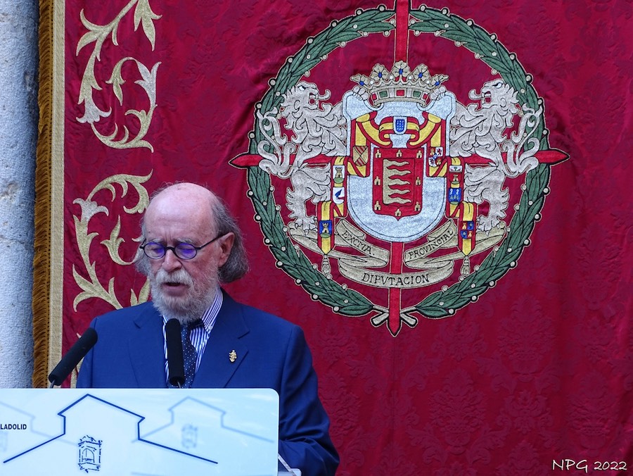 Conrado Íscar, Presidente de la Diputación de Valladolid, entregó el «Premio a la Trayectoria Artística» correspondiente a 2021 a Jesús Urrea Fernández. La laudatio del premiado corrió a cargo de Joaquín Díaz. (Fotografías de Nicolás Pérez Gómez).