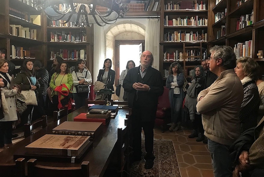 Un numeroso grupo de integrantes de la Sociedad Cántabra de Escritores visitó la Fundación, ejerciendo Joaquín Díaz de guía y anfitrión no solo del centro sino también de Urueña, la localidad vallisoletana donde éste se ubica. Vemos a continuación un par de fotografías de la jornada.