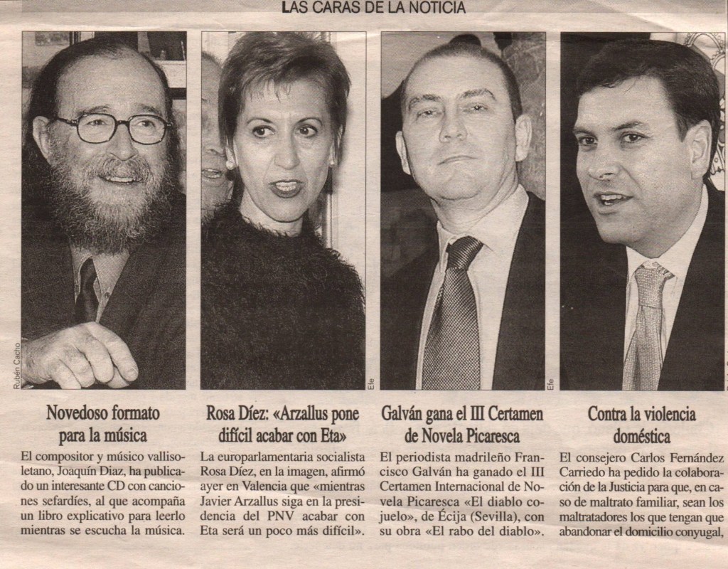 Son dieciocho los temas incluidos en este libro-disco de Joaquín Díaz producido y editado en 2001 por TF. Media y Diseño S.A. Luis Delgado es el técnico de sonido de un trabajo grabado en su Museo de Instrumentos Musicales (Urueña) y en cuya instrumentación intervienen, además de Joaquín (voz y guitarra), Javier Coble (piano), Diego Galaz (violín), Jaime Muñoz (cálamo, flauta travesera y clarinete), Cuco Pérez (acordeón) y el ya mencionado Luis Delgado (laúd, saz, trompa marina, tar, daff, bendhir y matraca). Transcribimos a continuación parte del preámbulo de este libro de Joaquín Díaz: