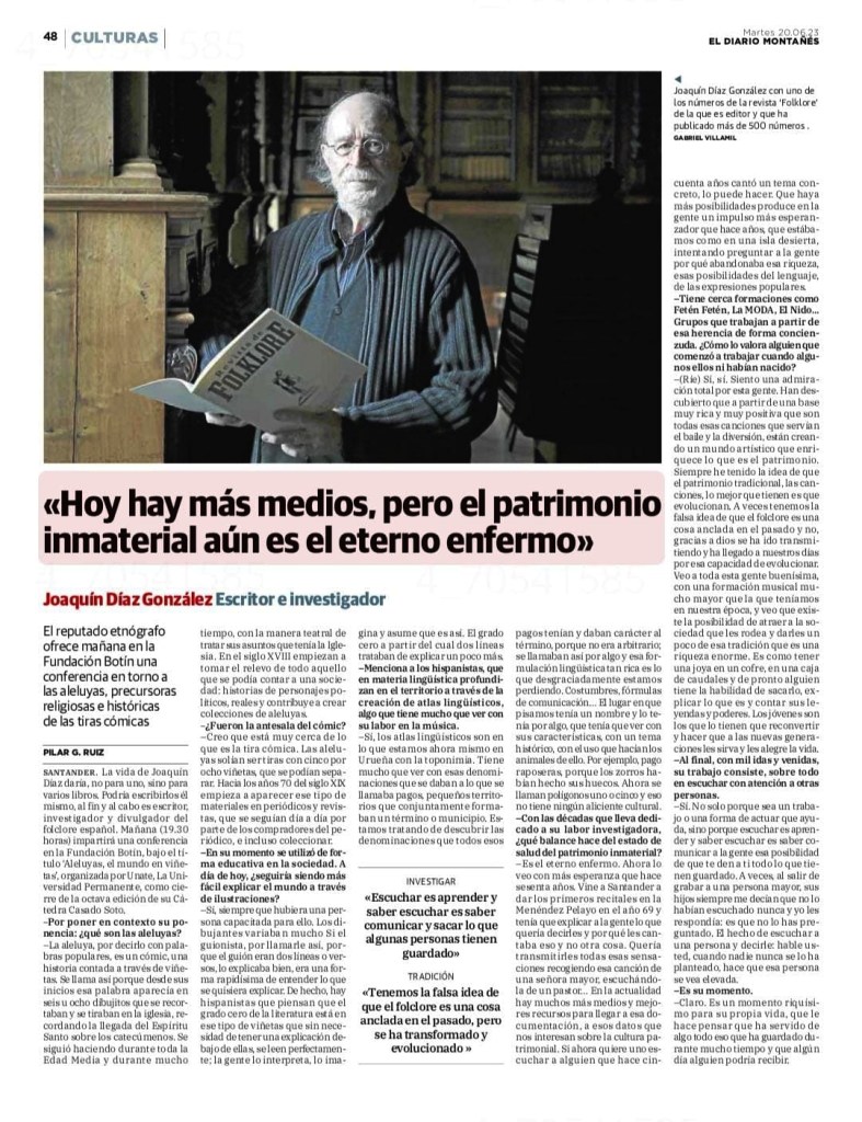Finalizamos la publicación con dos de las noticias aparecidas en prensa sobre la conferencia ofrecida por Joaquín Díaz.