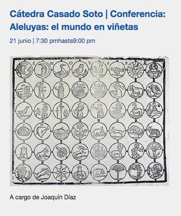 La Cátedra Casado Soto de este centro fue el escenario donde Joaquín Díaz ofreció la conferencia «Aleluyas: el mundo en viñetas» el pasado 21 de junio, documento que gracias a su infinita generosidad ponemos hoy a vuestra disposición. Se encuentra justo después de las dos siguientes fotografías del evento.