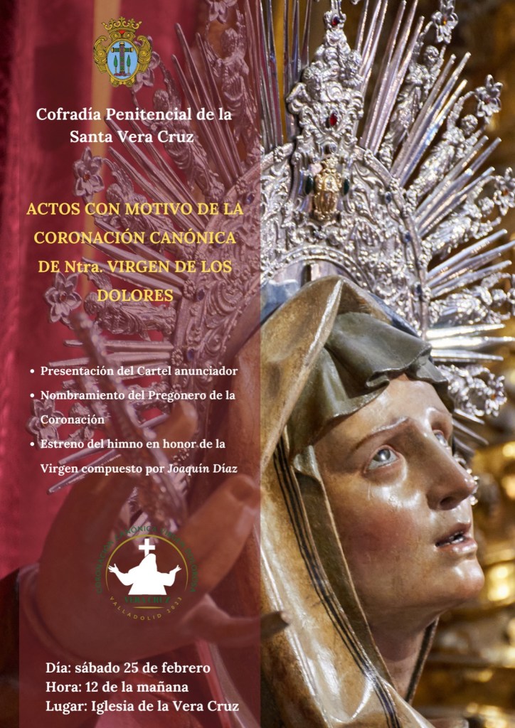 La Cofradía Penitencial de la Santa Vera Cruz de Valladolid presentó el sábado 25 de febrero de 2023 el cartel anunciador de la Coronación Canónica de la Virgen de los Dolores de la Vera Cruz, obra del artista Santiago Bellido que podemos ver bajo estas líneas.