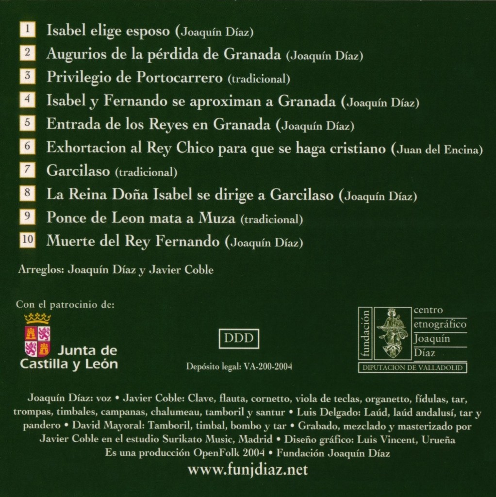 Son diez los temas incluidos en este trabajo de Joaquín Díaz grabado, mezclado y masterizado por Javier Coble en el estudio Surikato Music (Madrid) en 2004 y editado por Openfolk. Intervienen en su instrumentación, además de Joaquín (voz), Javier Coble (clave, flauta, cornetto, viola de teclas, organetto, fídulas, tar, trompas, timbales, campanas, chalumeau, tamboril y santur), Luis Delgado (laúd, laúd andalusí, tar y pandero) y David Mayoral (tamboril, timbal, bombo y tar). Los arreglos corrieron a cargo de los mencionados Javier Coble y Joaquín Díaz y el diseño gráfico de Luis Vincent.