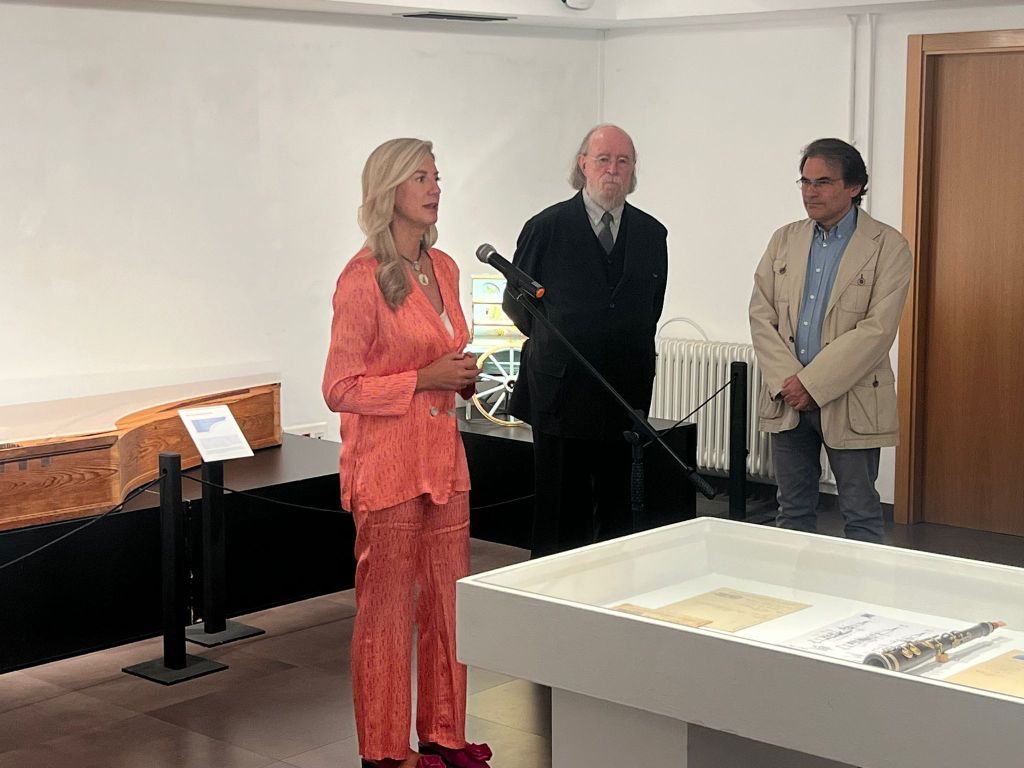 La concejala de Educación y Cultura del ayuntamiento de Valladolid, Irene Carvajal, nuestro protagonista, Joaquín Díaz, y el coordinador del programa Valladolid Letraherido, Pedro Ojeda, presentaron el 18 de septiembre en la Sala de Exposiciones de la Casa Revilla la muestra «Fabricantes de tonadas: constructores de instrumentos musicales en Valladolid«.