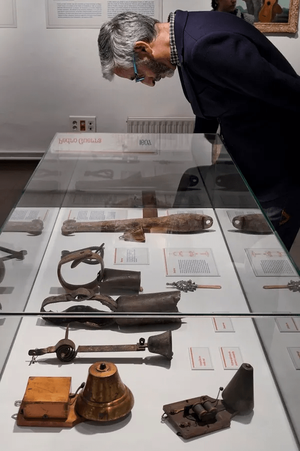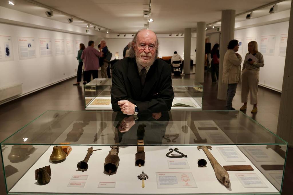 Junto a un piano fabricado junto a San Benito por los Hermanos García, hay una vieja estampa de Nicolás Chapuy con la puerta que se levantó a finales del XVII para celebrar la llegada de Carlos II a la ciudad. «Se pueden ver en esa obra doce espadañas, que reflejan la importancia que tuvieron las campanas en la vida diaria de Valladolid», subrayó en la inauguración nuestro protagonista.