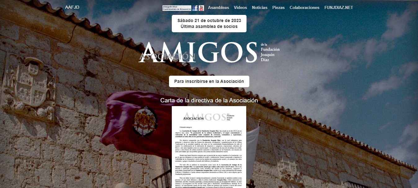 Aprovecho para recordar la dirección web de nuestra Asociación (http://amigosjoaquindiaz.net/), auténtico escaparate de sus actividades y noticias más relevantes. El enlace está también disponible en la sección correspondiente del blog (columna derecha).
