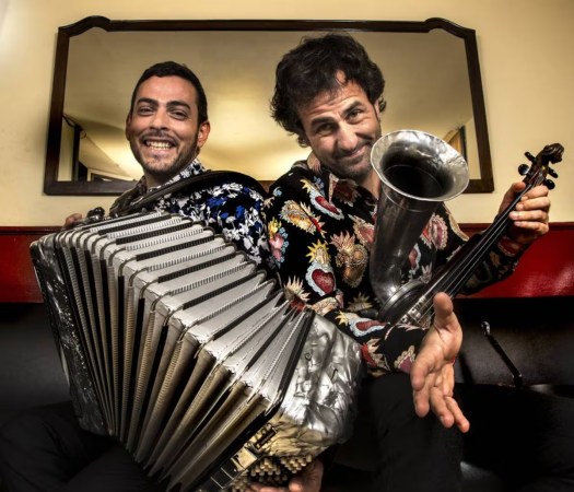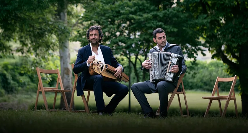 Sus composiciones nos guían, a ritmos de baile por fox-trot, vals, chotis, seguidillas o habaneras, meciéndonos con sus acordes por la Península Ibérica y haciéndonos volar de Italia a Japón o de Argentina a Portugal. Estas melodías instrumentales para escuchar y bailar en directo recorren nuestras raíces e incorporan matices renovadores que evocan los distintos paisajes del mundo que los artistas han conocido en sus intensas giras internacionales y que ya han llevado por toda la geografía española en los más de 1000 conciertos realizados.