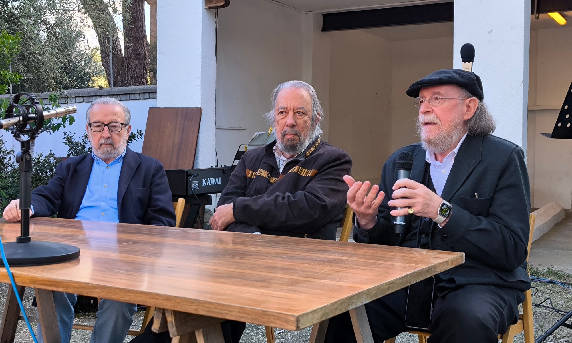 José Ramón Pardo, Jesús Antonio Cid y Joaquín Díaz, de izquierda a derecha Joaquín Díaz, José Ramón Pardo, editor del libro-disco, Jesús Antonio Cid, presidente de la Fundación Ramón Menéndez Pidal, y el propio autor, Xavier Ribalta, presentaron el jueves 25 de abril "Cants Intemporals / Cantos Intemporales", diseñado y maquetado por Luis Vincent en …